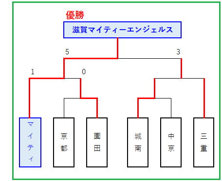 | 兵庫 | 野田 | 滋賀 | 愛知 | 新宮 | 福井 | 勝 | 負 | 順位 | |