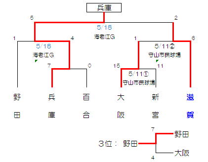 | Aリーグ | 野田 | 兵庫 | 大阪 | 滋賀 | 勝 | 負 | 順位 |
